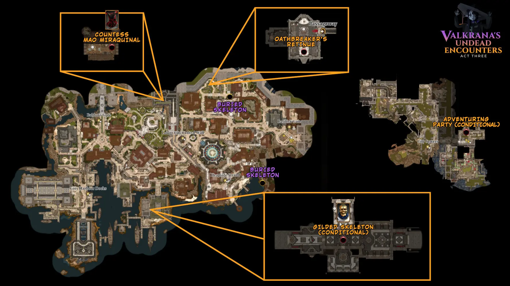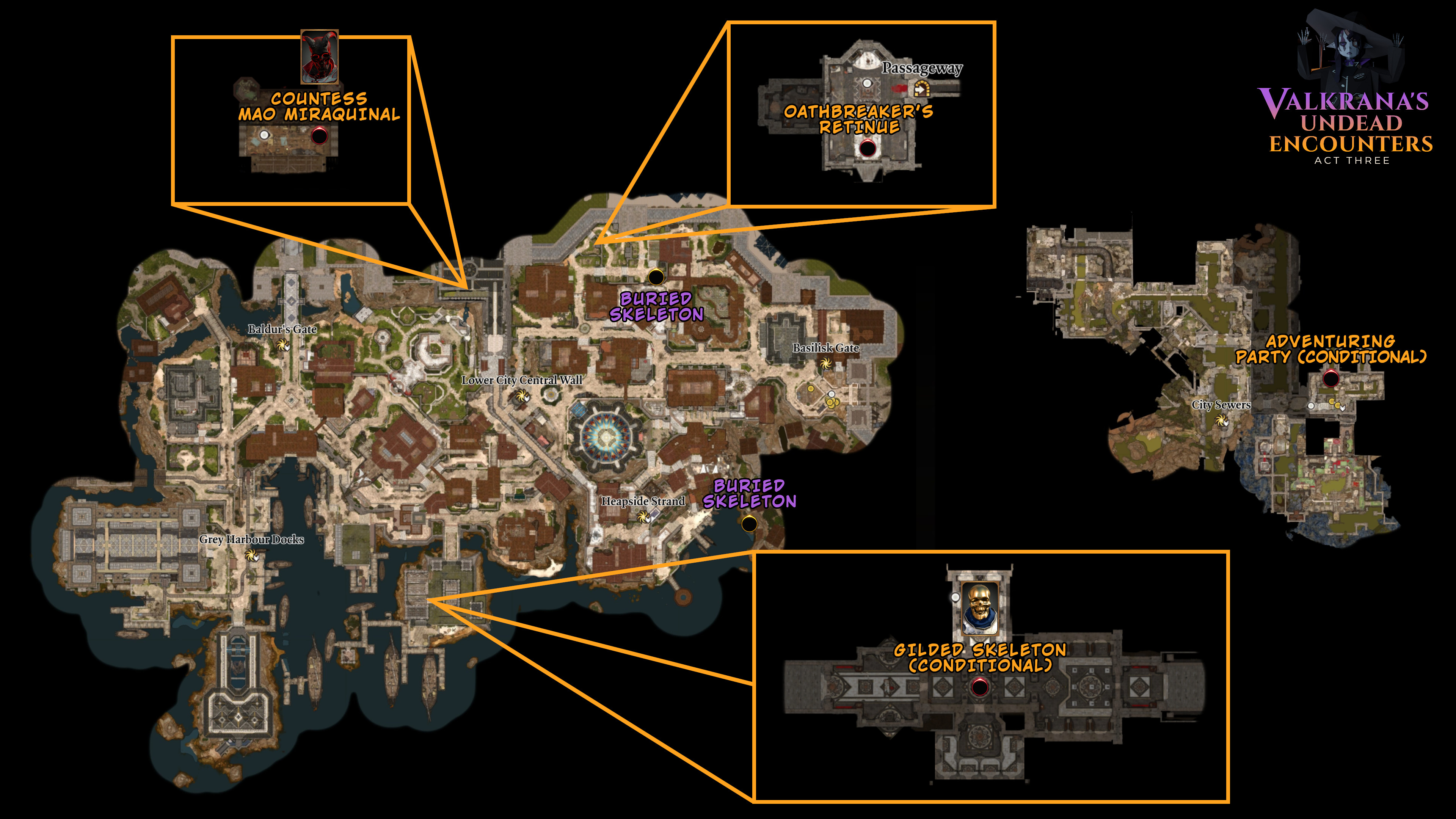 3. Baldur's Gate, Counting House, Vaults — GILDED SKELETON boss fight here. Drops gold, valuables, Valkrana's Limited Edition Bone amulet, and the Gilded Stamp Seal maul.