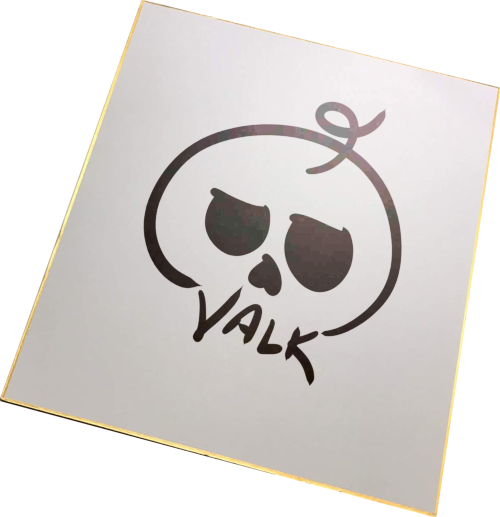 Valkrana fumbles multiple greetings, and your board. All that effort keeping it dry; now it's damp and dirty. She doesn't seem to care, just focuses on the lines to your sides. Whispers erupt around you. You can't help but shiver—yours might just be the first shikishi with a personal touch! You place it before her. She regards your soiled board with contempt only as long as it takes to place her autograph. You shiver at that, too. Then her attention flicks to the boards at her other two hands as she slides yours forward without another word. You snatch it up and hurry off, too overcome with glee to notice all the envious stares trained your way. What a rush! What a wonder! She didn't even care! This was worth your life savings!